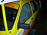 maar het ruitje aan de bestuurderskant was opeens verbrijzeld. We hebben snel